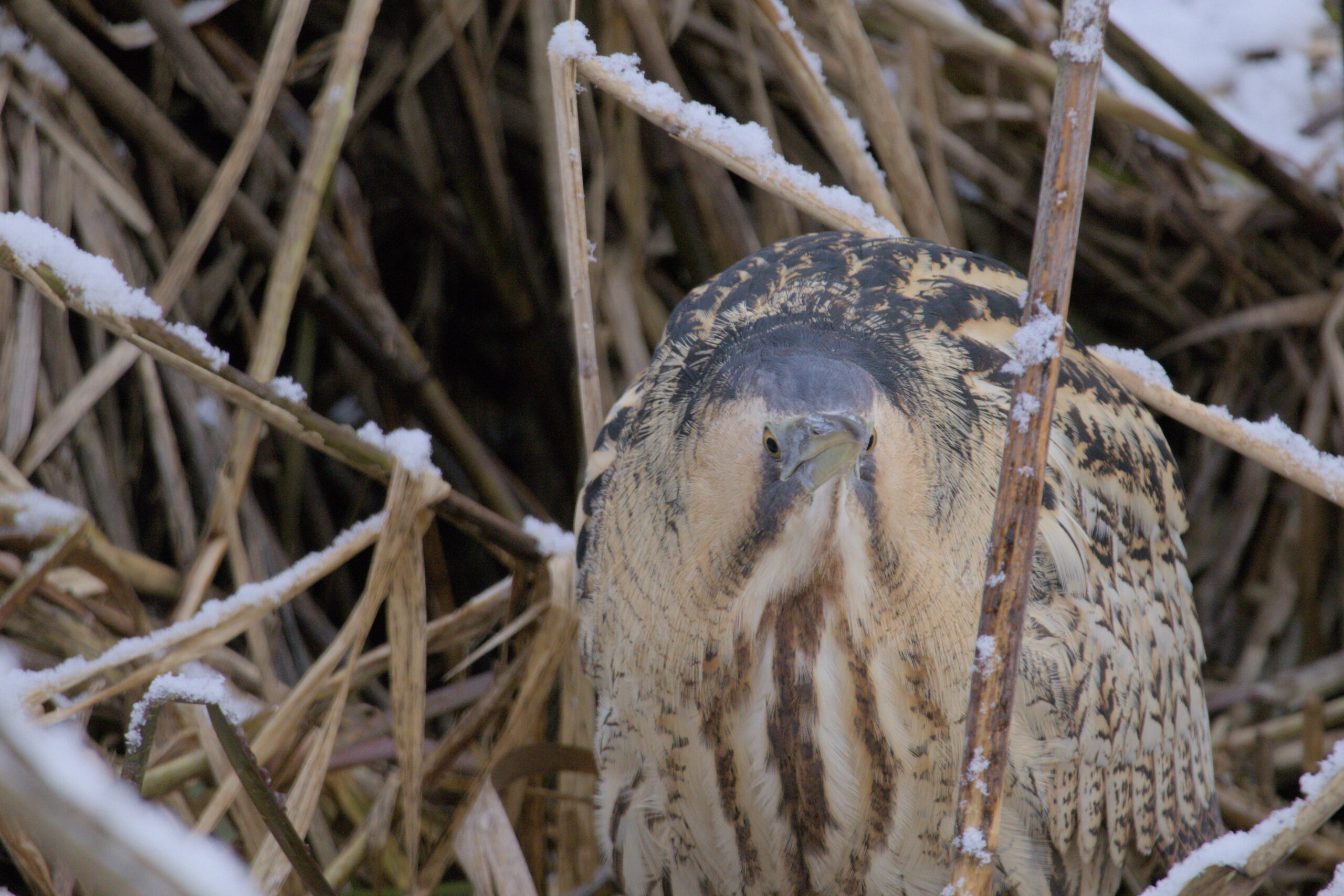 Einer meiner Lieblingsvögel sind die Rohrdommel und die Zwergdommel. Es sind sehr schöne Reiher jedoch sehr schweirig zu finden, da sie sich recht gut verstecken können. Das macht es natürlcih um so schwieriger sie zu fotrografieren. Ich musste lang rechechieren, wo ihr Lebensraum ist und wo ich sie gut und ungestört fotografieren kann. Dazu nutzte ich die Seite ornitho.ch. Denn dort sah ich wo welche gesehen wurden. Es kamen für mich zwei Orten in frage. Das war einmal der Klinganuer Stausee und einmal der Flachsee. Zuerst probierte ich es am Klingnauer Stausee die Rohrdommel zu finden und sah sie sogar schon am ersten Tag, jedoch gelangen mir leider keine guten Fotos. Nach dieser Beobachutng scheiterte es leider mehrmals und ich war kurz davor mit dem Projekt aufzuhören. Doch aufhören kam mir eigentlich nie in frage und als ich ornitho eine Rohrdommelmeldung am Flachsee sah probierte ich es dort. Ich rechechierte viel um zu wissen wo genau am Flachsee ich sie finden konnte. Da fand ich heraus, das sie sich genau vor dem Hide befinden muss. Das war natürlich perfekt für mich. So machte ich mich an einem Sonntag im Februar auf den Weg zum Hide. Ich verbrachte zwei Stunden im Hide als sie plötzlich aus dem verschneiten Schilf herauskam. Ich war überfroh und konnte sie eine Stunde lang beim Jagen fotografieren. Um die Zwergdommel zu fotografierenn wollte ich ebenfalls an den Flachsee. Bei ihr klappte es sogar schon beim zweiten Ansitz. Ein Pärchen flog den ganzen Abend vor dem Hide herum und kam immer wieder aus dem Schilf heraus.